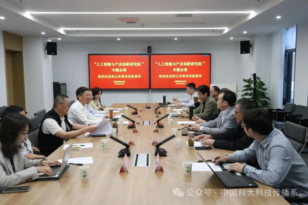 2025年5月9日上午, “人工智能与产业创新研究”专题会商在中国科大东区人文楼会议室顺利举行。在此次会议上,来自黄山市人民政府领导一行与中国科学技术大学的专家老师,共同探讨人工智能技术如何赋能黄山市产业升级与创新发展。