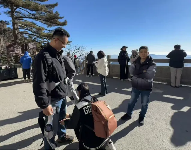 黄山风景区管委会经济发展局严晓彤全程带队考察并讲解相关场景情况。考察团沿预定路线,依次深入调研了规划中的六大人工智能应用场景。在云谷索道入口,“从容上山”场景通过智慧调度,破解核心索道入口排队拥堵难题;行至爬坡路段,“赛博登山”场景拟通过引入智能科技装备,降低游客登山体力消耗;在观景平台,“虚实结合”场景将借助元宇宙设备与技术,实现游客“穿越”时空的体验,感受自然景观与数字文化碰撞的多元魅力。在始信峰下,“AI伴游”场景展现广阔服务前景,“低空翱翔”场景聚焦无人机牵引低空旅游应用;在北海宾馆,考察团了解“随身医生”安全保障场景,该场景依托智能穿戴式健康监测设备,实时追踪游客身体状态、预警健康风险,筑牢游客出行安全防线。