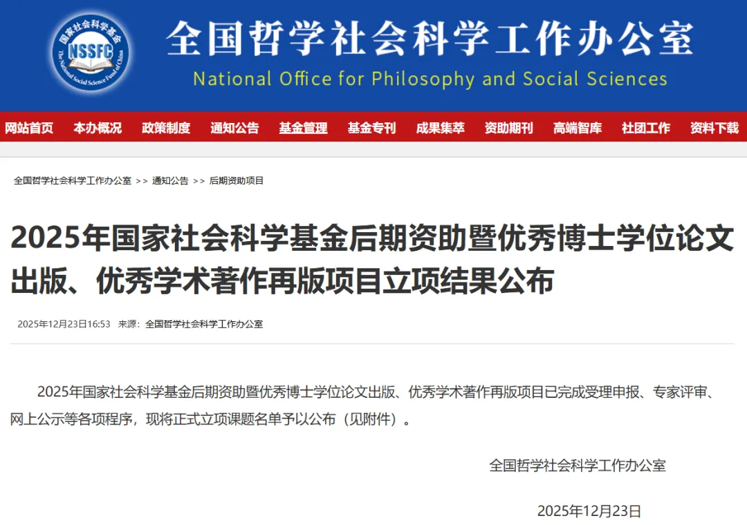 国家社会科学基金后期资助项目是国家社科基金项目的重要组成部分,旨在资助学术价值高、社会效益好、研究基础扎实的完成或接近完成的哲学社会科学研究成果,鼓励科研工作者潜心治学、打磨精品,对于推动哲学社会科学高质量发展具有重要意义。