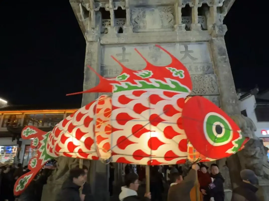 活动首日,创客们陆续抵达黄山市歙县报到。当晚,一场极具地方特色的“歙县鱼灯艺术展演”在徽州古城内上演。鱼灯游动,光影摇曳,不仅展现出徽州非遗文化的生动魅力,也为即将展开的AI创作注入了深厚的文化底蕴与视觉灵感。